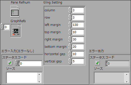 今回は、縦、横の個数を指定して、複数のグラフをタイリングするサブVIを作成しました。